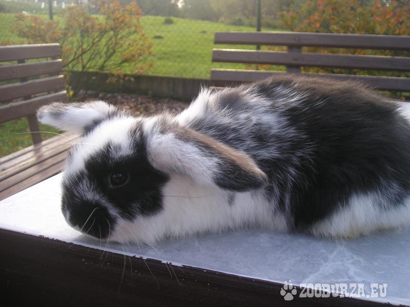 Popis: Nabízím 2 zakrslé beránky, samičku a samečka v černobílé barvě s teddy genem a genem pro bílé uši a modré oči. Narodili se 19.9.2014 a k odběru jsou ihned. Králíčci jsou moc hodní a mazliví. Jsou přeléčení proti kokcidióze a do nového domova dostanou balíček krmení a výpis předků. Více info: http://teddyzmoniqe.webnode.cz/na-prodej/ , Pondělí-Pátek mi prosím volejte po 15.00h.