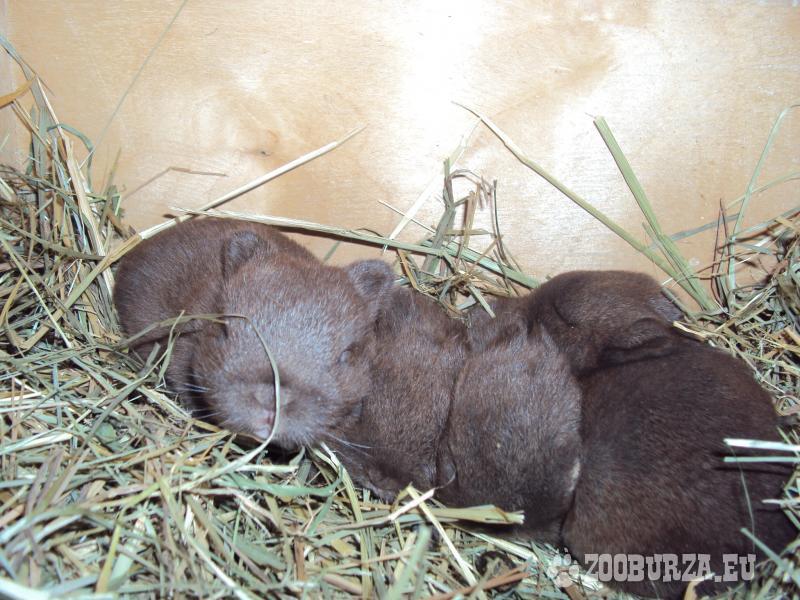 Popis: Nabízím k zamluvení malé králíčky, narozené 6.června, k odběru budou od poloviny července (nebo později-dle kondice), budou již preventivně přeléčení na kokcídie, zvyklí na ruch a lidskou ruku. Budou malého vzrůstu, v dospělosti cca 1kg. Všichni králíčci jsou v oblíbené havana (čokoládové) barvě. Hnědá očka. Při rychlém pevném zamluvení cena dohodou - nabídněte. Osobní odběr bude možný ve městech: Jihlava, Havl. Brod, Pelhřimov a okolí. Případně lze sjednat dopravce nebo osobní dovoz.