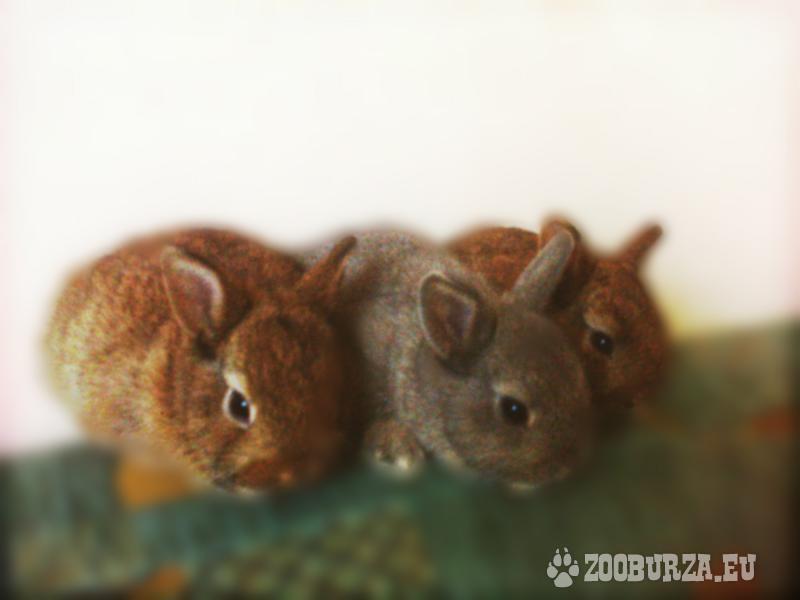 Popis: Nabízím zakrslé králíky, hnědí jsou kluci a ta šedá je holka,budou mít 7 týdnů,jsou zvyklé na ruku.Maminka je zakrslý Kastorex hnědé barvy a otec je krátkouchý zakrslý šedé barvy.Jsou připraveni na nový domov.